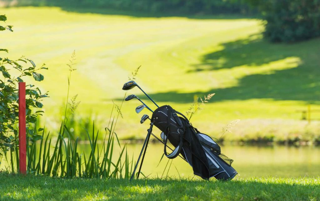 In een hindernis (rode of gele palen) mag je zonder straf het water of de grond aanraken. Je mag ook losse natuurlijke voorwerpen verwijderen (blaadjes, takjes) en een oefenswing maken.